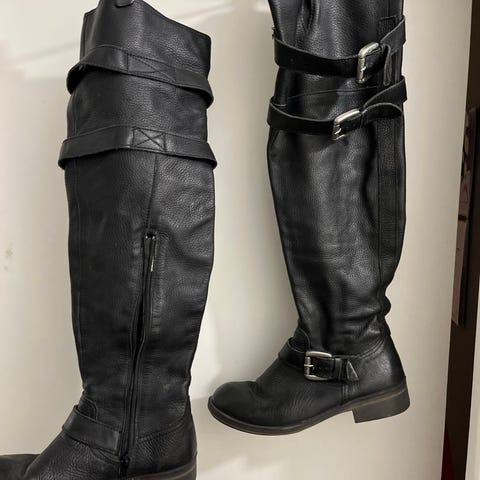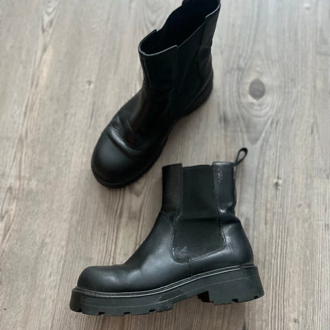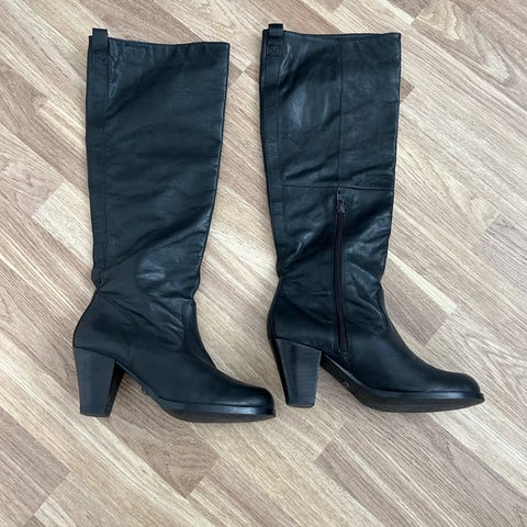 Vagabond saappaat koko 38 mustaa nahkaa. Pitkät saappaat, ei vetoketjua vaan varsi joustaa takaa. Sopivat siis myös hieman kookkaampiin pohkeisiin.