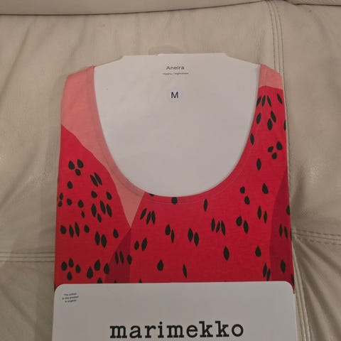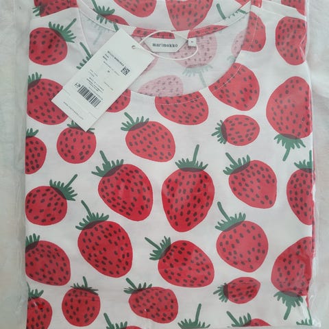 Myydään käyttämätön Marimekko Monomi Mansikkavuoret lyhythihainen yöpaita, koko L.