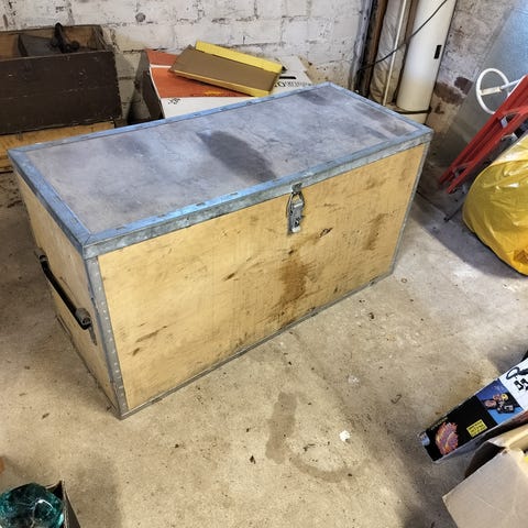 Säilytetty puutarhatarvikkeita, laatikko ollut kylmässä ulkovarastossa.