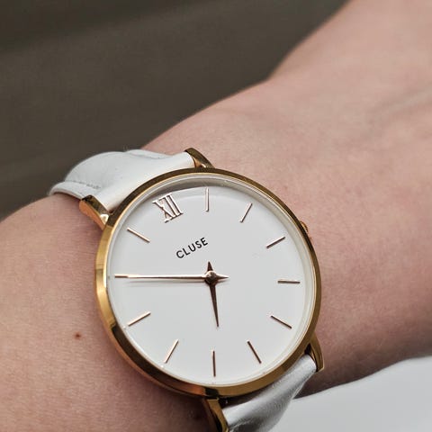 Louis Royal naisten rannekello, jossa on pyöreä kellotaulu ja ruskea nahkaranneke. Kellon taulu on vaalean sävyinen, ja siinä on selkeät numeromerkit. Kellossa on kvartsikoneisto.
