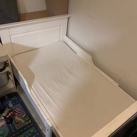 Seuraavalle nukkujalle ehyt jatkettava sänky. Patjan tapaisen saa halutessaan mukaan. Meille käytettynä hankittu, mutta hyvässä kunnossa vielä.
