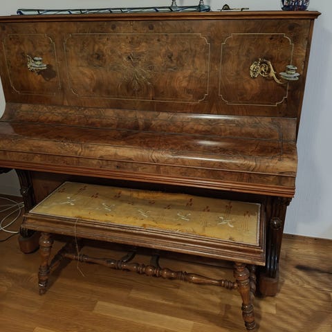 Harvinaisempi sininen malli. Piano on täysin toimiva ja soitettavissa. Leima 1978.