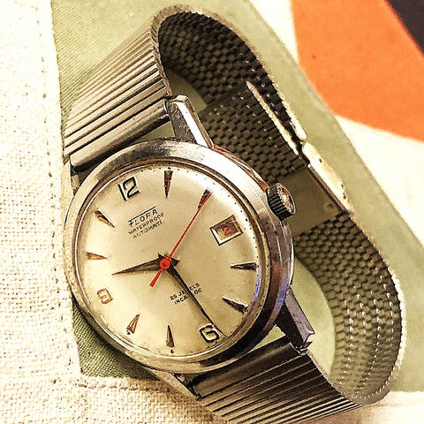 Flora miesten rannekello , 17 kivinen , jossa on nahkaranneke. Kellossa on hopeanvärinen kellotaulu ja erillinen sekuntiosoitin. Kellon takakansi on metallia.Halkaisija 37 mm