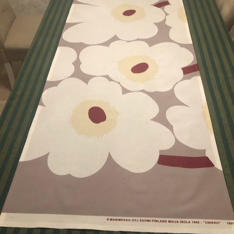 Akryylipinnotteinen Unikko kangas. Koko kapeimmasta kohdasta 53 cm. Pakkaleveys 144 cm.