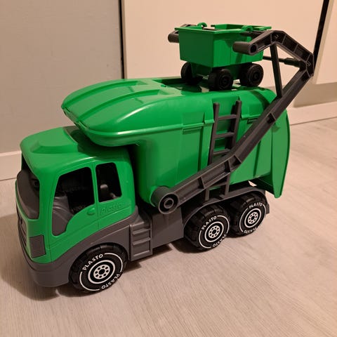 Hyväkuntoinen L&T roska- auto ja jäteastia josta puuttuu kansi. Auto on ehjä ja toimiva yksi peili puuttuu. Hinta 10€.