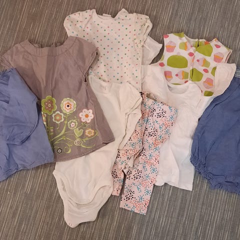 Myydään tyttöjen vaatepaketti koossa 74-80cm. Ehjiä, siistejä ja hyväkuntoisia. Merkkeinä H&m ja Lindex.