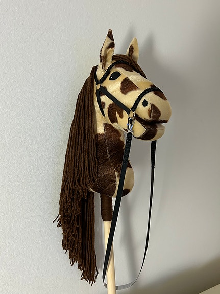Hevonen ommeltu huolellisesti ompelukoneella. Harja, korvat, silmät ja sieraimet kiinnitetty käsin. Korvissa kovikkeet.