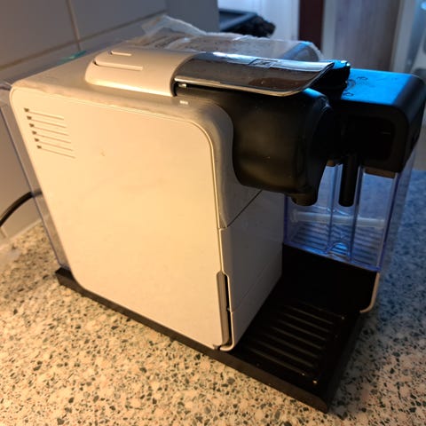 Nespresson kapselikahvinkeitin, joka tekee myös maitokahvit kuten cappuccinot automaattisesti. Tähän sopii kaikki Nespresson original kapselit ja muiden valmistajien samanmalliset kapselit. Ehjä, siisti ja kaikin tavoin toimiva.