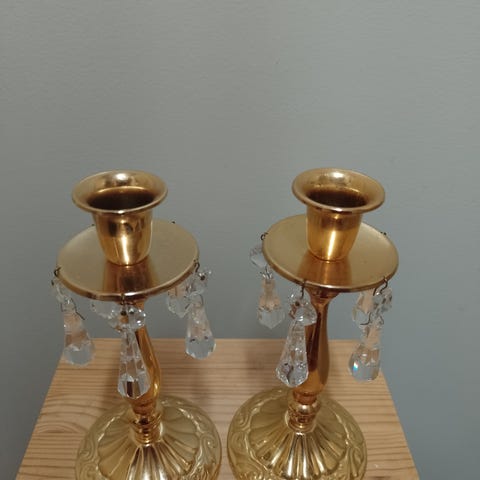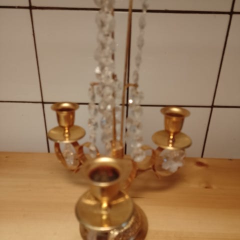 Hyväkuntoinen kynttilänjalka kork.17cm. 24 karaatin kultaus
