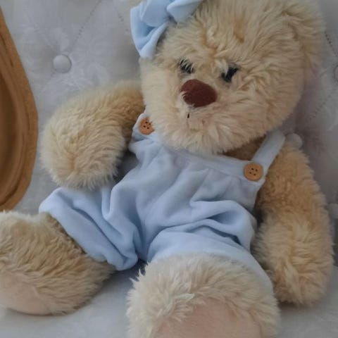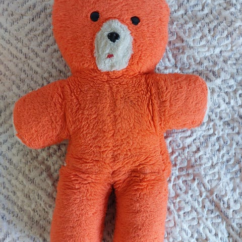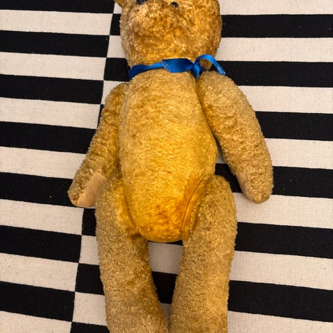 Vanha nalle, lapun mukaan Russ/ Thornbury -merkkiä. Ei niveliä käsissä tai jaloissa. Korkeus noin 43 cm.