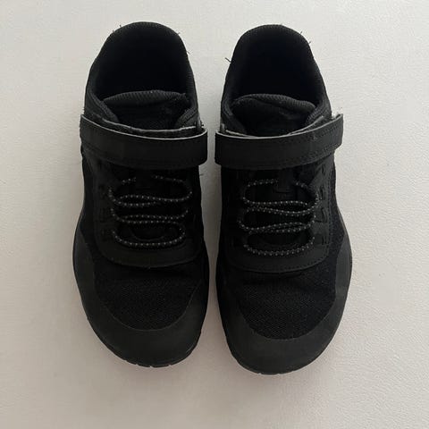 Vielä hyvin käyttöikää, kevyt ja helppo kenkä pukea, tarrat ja kiristysnauhat. Toisen kengän etuosassa tekonahkaliimaus auennut, voin liimata sen takaisin jos haluat.ks kuva. Kosmeettinen vika. Pohjissa on jo kulumaa kantapäissä mutta pohjaa hyvin jäljellä. Perus mustat sopii kaikkeen. Ei veden kestävä.
