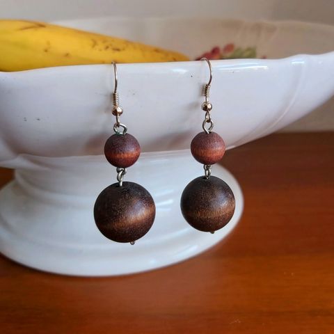 Retrot ruskeat helmet ja korvakorut ruuvilla todenäköisesti 50-60 luvulta. Ehjät.