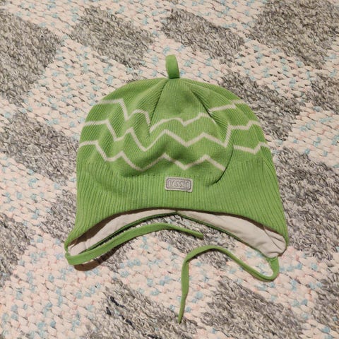Vihreä fleecevuorinen pipo.