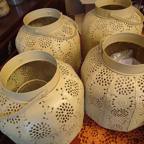 Lyhty joka ollut pihakäytössä. Ruostetta on mutta lyhty itsessään ehjä. Avautuu ovimaisella mekanismilla.