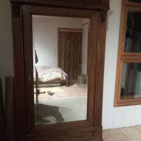 Kaappi on jo purettuna osiin ja kuljetusvalmiina. Ohjeistus kasaamiseen annetaan. Kolme hlöä kannattaa olla pystytksessä