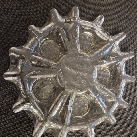 Muurla Finland tuikkukynttiläteline, jossa 2 lasista puikkoa, jotka ripustetaan metalliseen telineeseen,.