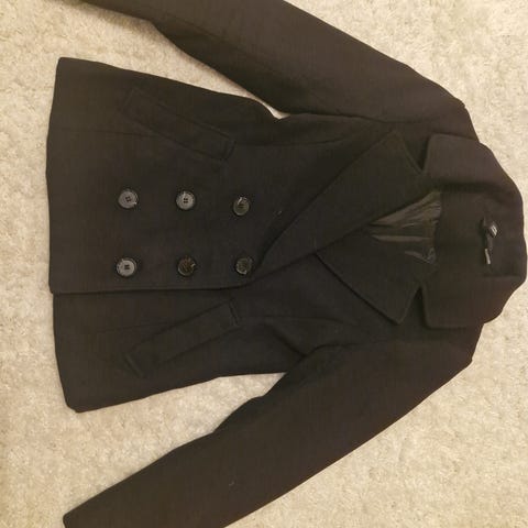 Myydään naisten villakangastakki. Koko s. Käytetty hyvässä kunnossa.