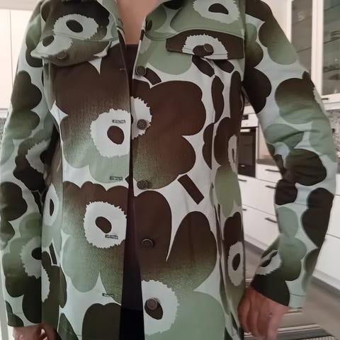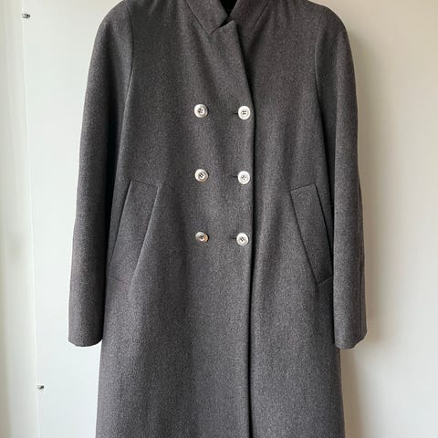Marimekko pohjepituinen villasekoitetakki. Väri tumman sininen, naisten koko 40. Takissa on vyö, joka mahdollistaa istuvuuden säädön. Takki vastaa hyvin kokoa.