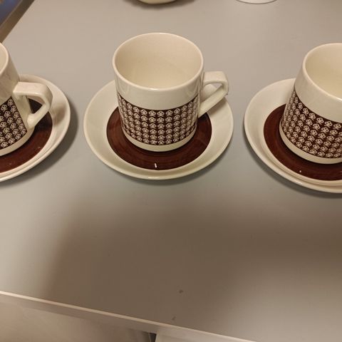 Myydään 12 kpl Arabia Säästöpankki kahvisetin 17 cm lautaset. Kaikki ovat käytettyjä. Katso kuvia. Kahdella reunoissa jälkiä - yhdellä pikkuinen, toisella isompi. Yhdellä lautasella halkeama, mikä ei ole näkyvissä toisella puolella. Kaikilla lautasilla valmistamiseen neljä jälkeä - toinen laatu?
