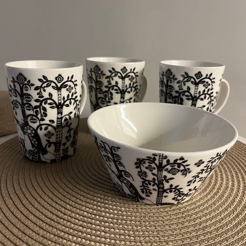 Iittala Taika mustavalkoinen astiasto.