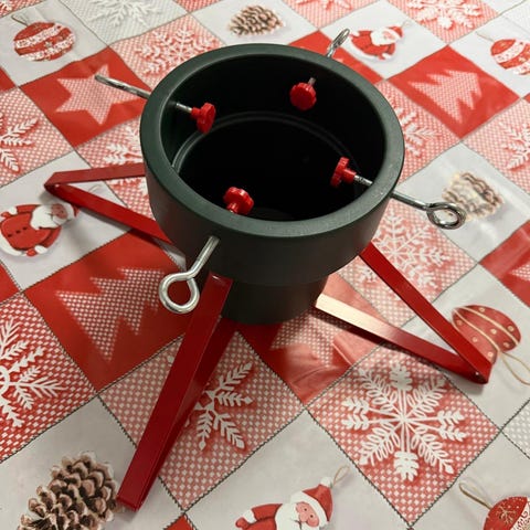 Koko 38,5 x 16 cm, materiaali muovi, metalliset kiinnikkeet, max puun korkeus 2,1 m, halkaisija 11 cm, vesisäiliö 1,6 l.