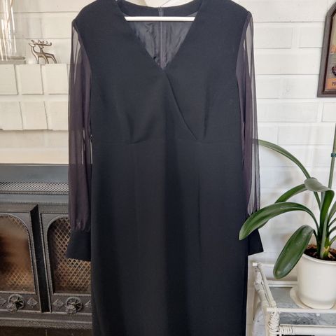 Mekko on rento ja siihen kuuluu irrotettava nyörivyö. Pyöreä pääntie, jossa laskokset. Takana vetoketju. Sivutaskut. Materiaali laskeutuvaa mutta ryhdikästä polyamidia. Kai-kai noin 61 cm, vyötärö samoin, helma 66 cm. Olka-helma 100 cm. Eli melko suoran mallinen , voi pitää myös ilman vyötä. Jäänyt kaappiin, ei kertaakaan pidetty. Savuton, eläimetön talous. Postitus onnistuu.