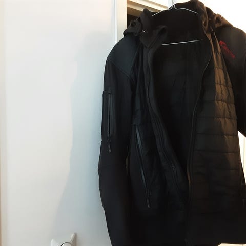 Sopii miehille sekä naisille, mutta miehille tarkoitettu. Takki on M-L. Kokolapussa lukee 50.