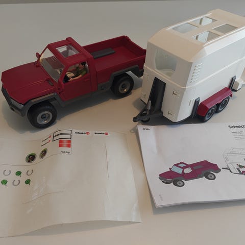 Schleich auto ja traileri sekä kuski. HUOM kuski unohtui kuvasta, laitan siitä kuvan kiinnostuneille kyllä.