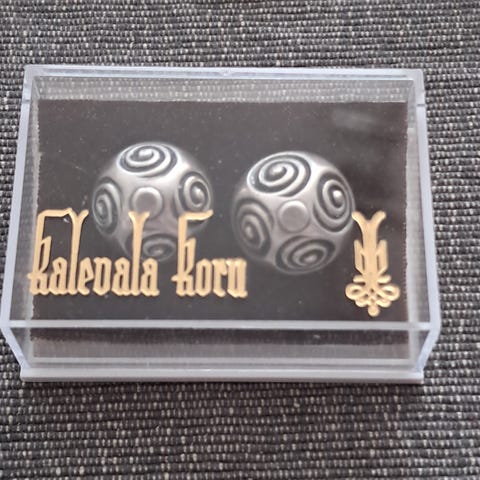 Korvakorut ovat 925-hopeaa. Tappikiinnitys. Korvakorun halkaisija on 14 mm. Ei alkuperäistä rasiaa. Olen käyttänyt näitä koruja jonkun kerran kauan sitten. Nyt tapit, taustat ja taustanastat on puhdistettu
