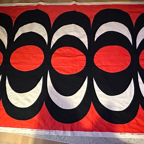 💚 Myyn harvinaisen 2 kpl setin alkuperäisestä 70-luvun Marimekon Kaivo-kuosista (Maija Isola). Väri on lime/keltavihreä–musta.