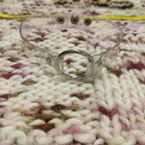 Muovinen unisex-kaulakoru, jossa on piikkikoristeet. Korun materiaali on muovi, ja se on suunniteltu käytettäväksi molemmille sukupuolille. Koru on vain metallin värinen mutta on kyllä ihan muovi luulisin.