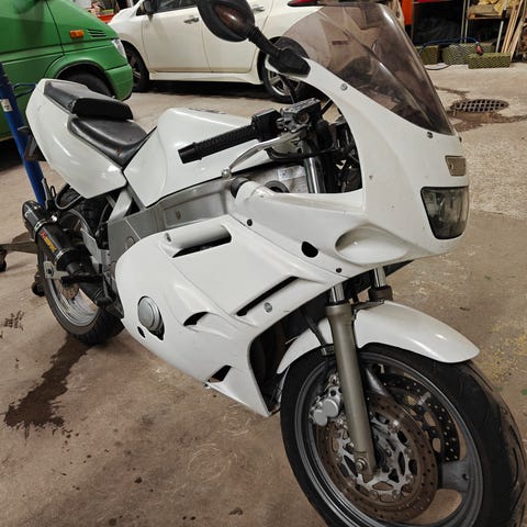 Kuvausta varten avattu paketti jossa on kuussatasen FZRn huoltomanuaali jossa teknisiä tietoja ja neuvoja sekä kytkentäkaavio.