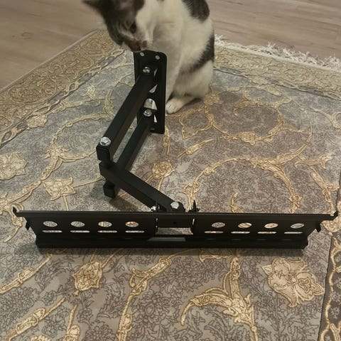 Musta, siisti TV: n seinäteline varrella, voi kääntää.