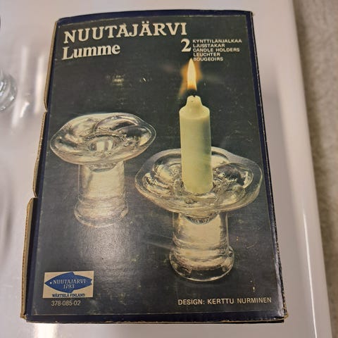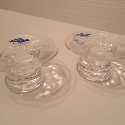 Iittala Nuutajärvi kynttilänjalka lasia eri väreissä. Kynttilänjalat ovat valmistettu lasista ja ne ovat eri värejä: vihreä, sininen, violetti ja kirkas. Sopivat käytettäväksi sisustuksessa.