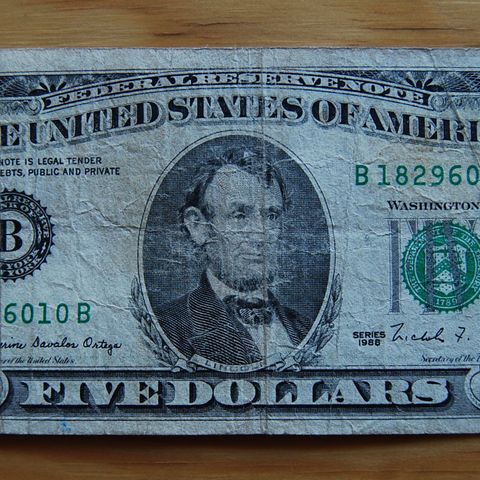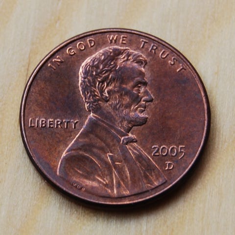 The portrait of Abraham Lincoln, the 16th President of the United States from 1861 to 1865, facing right accompanied by the motto.