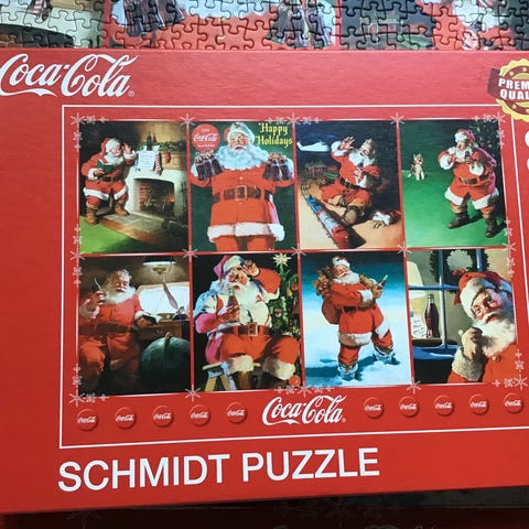 Yhden kerran kasattu 1000 palan palapeli Coca-Cola joulupukkien kuvilla. Ihanan jouluiset kuvat ja tätä oli muutenkin todella mukava kasata.