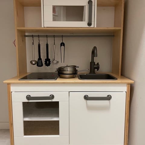 Keittiön yläkaappi/mikro osasta on irronnut sivuseinät, on korjattavissa kuhan vähän purkaa ja ostaa uudet tapit siihen. Mutta toimii myös ilman niitä sivuseiniä.