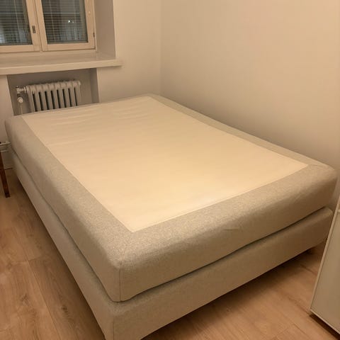 Myydään hyvä sänky (runko ja patja) muuton alta pois. Ostettu Ikeasta tasan vuosi sitten. Petauspatja joka tuli sängyn mukana löytyy mutta se on rehellisesti aika kamala joten suosittelen ostamaan sellaisen muualta. Nouto Espoosta Sepänkylästä.