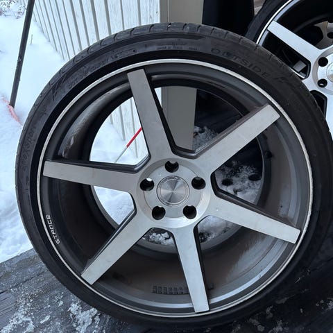 19” dotzit kumeilla, joissa ainakin 4-6mm pintaa. Toisissa 225/35, toisissa 235/35.
