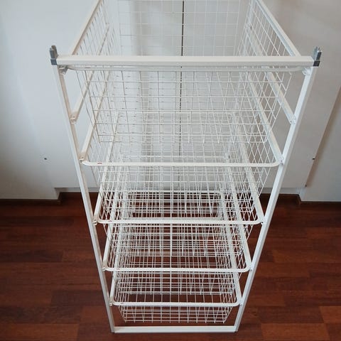 Myydään metallinen valkoinen hyllykkö, voi laittaa seinälle, kaapin päälle tai pitää vaikka lattialla.