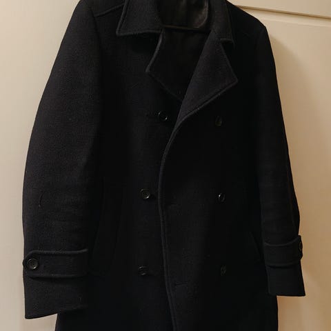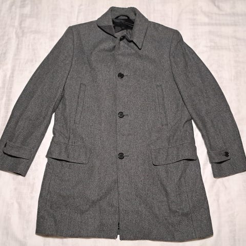 Hyväkuntoinen miesten harmaa Dressmannin villakangastakki