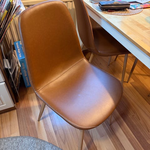 Kaksi hyvässä kunnossa ruokapöydän tuolia.