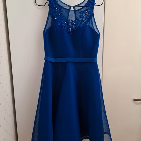 Polvipituinen, xs-s - kokoinen, Swing- merkkinen juhlamekko, jossa vaalean keltaisia paljetteja yläosassa.