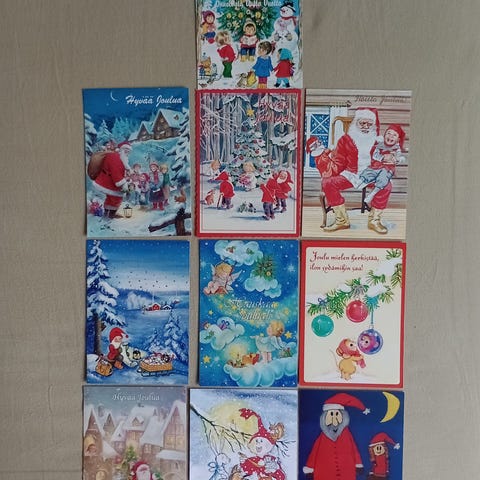 10 kpl yksiosaisia joulukortteja . 10 x 14 cm. Uusia, käyttämättömiä.
