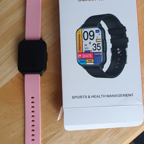 Myydään älykello, jossa on vaaleanpunainen hihna ja kestävä rakenne. Kello tukee useita älytoimintoja ja on valmistettu laadukkaista materiaaleista. Tuote on valmistettu Kiinassa ja täyttää RoHS-vaatimukset.