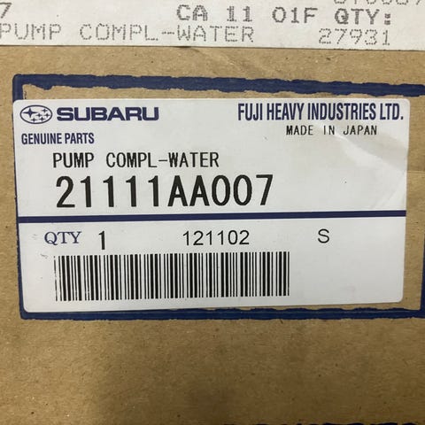Subarun uusi vesipumppu. Alkuperäisosa. Versio yhdellä letkulähdöllä ja avopesä kohti käyttöhihnaa. Näissä AINA varmistettava pumpun sopivuus autokohtaisesti, koska tästä on variantteja vaikka moottori olisi sama. Kysythän siis kohdeauton rekisteritunnuksella.