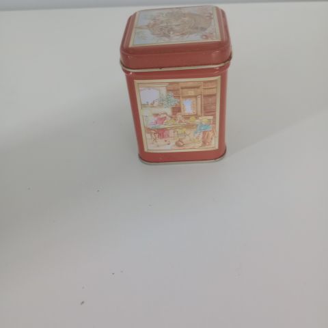 Pyöreä peltipurkki kukkakuviolla. Kunto hyvä