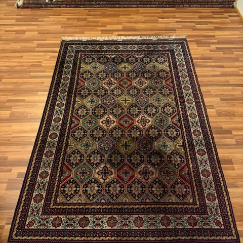 Käsinsolmittu Afganistanin villamatto. Maton kuviomalli on niin sanottu “elefantinjalan” malli, ja lisäksi maton keskiosassa on käytetty aaltoilevaa kuviota, joka antaa sille esteettisen ja kauniin ilmeen. Matto on erittäin hyvässä kunnossa eikä siinä ole mitään vikaa. Se on myös melko vanha, arviolta noin 40 vuoden ikäinen, mutta silti erinomaisessa kunnossa. Erittäin kaunis afganistanilainen villamatto.
