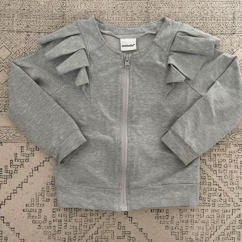 Metsolan taskullinen collegepaita, koko 98/104. 95% puuvilla, 5% elastaani. Hihoissa kulumaa ja muutama pieni reikä.