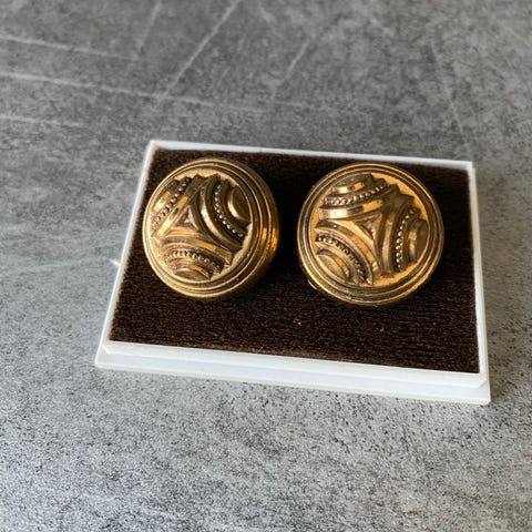 Yksinäinen kipsi korvakoru, puuttuuko sinulta toinen?:) Kalevala Koru 1643-2 korvakorut pronssia. Klipsikiinnitys ja kivi aurinkokvartsia .Korun halkaisija n.18mm. Ajanpatinaa on joten katso kuvat.